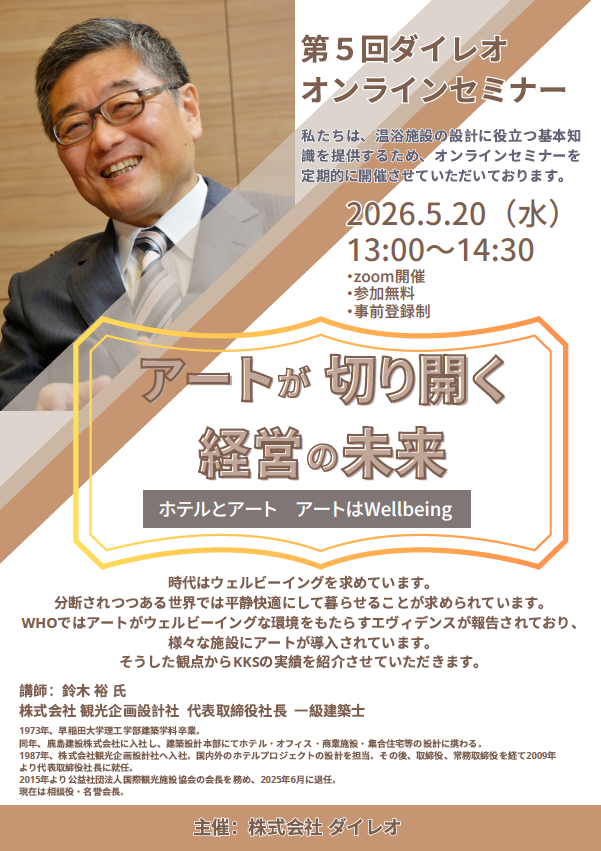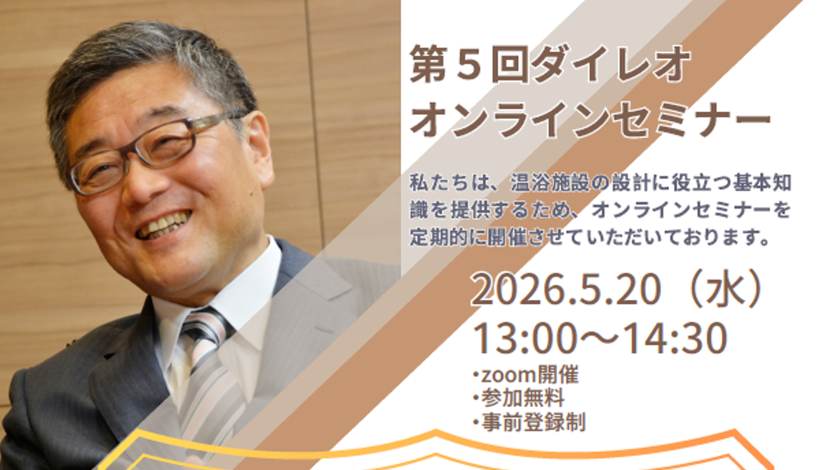 私たちは、温浴施設の設計に役立つ基本知識をご提供するため、オンラインセミナーを定期的に開催しております。